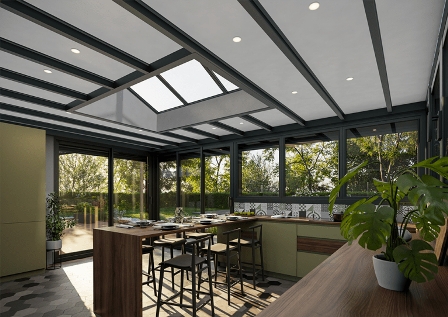 Pour éviter l’effet de serre dans une véranda en période estivale, misez sur des stores extérieurs, un brise-soleil et des volets roulants. Ces équipements empêchent le rayonnement solaire de traverser le vitrage et de s’accumuler à l’intérieur de la pièce. En hiver, ils constituent une couverture isolante et protègent du vent.